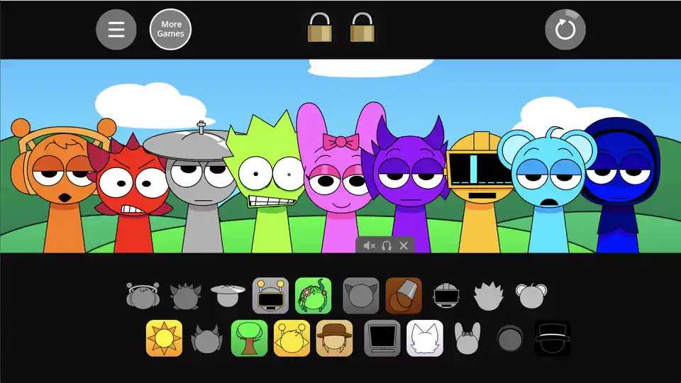 Создавайте уникальные музыкальные композиции в Sprunked Incredibox, комбинируя различные звуковые элементы и персонажей в интуитивно понятном интерфейсе.